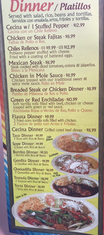 Served with salad, rice, beans and tortillas. Servidos con ensalada, arroz, frijoles y tortillas